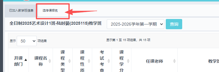9.點(diǎn)擊“查詢”按鈕,確認(rèn)是否已經(jīng)加入教學(xué)班