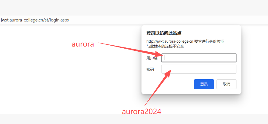 4.輸入認證用戶名、密碼(用戶名為aurora 密碼為aurora2024)