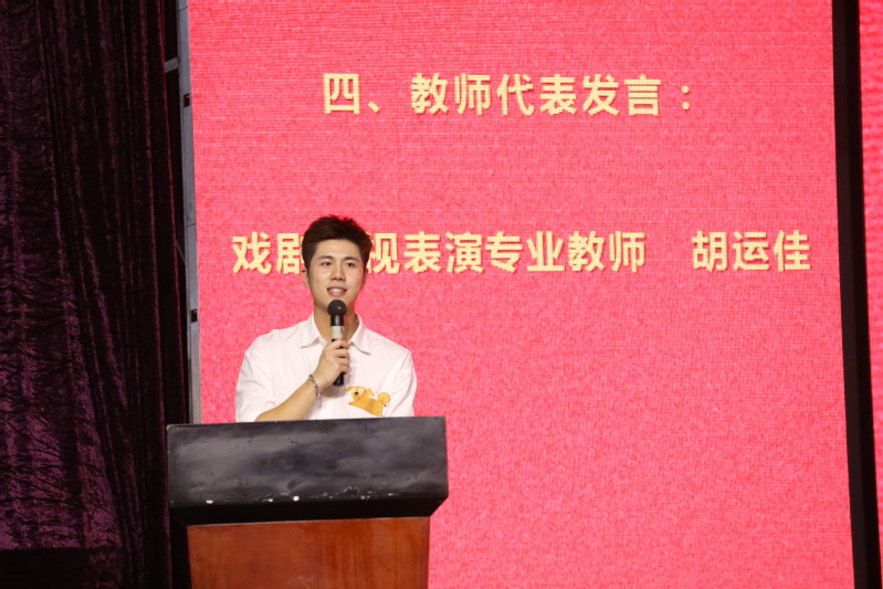 戲劇影視表演專業(yè)胡運(yùn)佳老師代表教師勉勵(lì)新生:大學(xué)是職業(yè)人生的“預(yù)備役”,需將熱愛轉(zhuǎn)化為日??炭嗟男袆?dòng);“先學(xué)做人,再學(xué)做戲”,注重品德與細(xì)節(jié);融入上海,汲取創(chuàng)作養(yǎng)分,并學(xué)會(huì)堅(jiān)持、不懼挫折。他希望新生珍惜三年時(shí)光,用行動(dòng)成就自己,與師友并肩成長(zhǎng)。