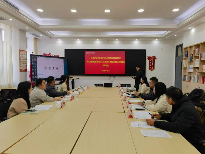 2025年12月3日下午,上海市民辦高校心理健康教育基地“AI心理智能交互系統(tǒng)2.0驗(yàn)收暨三期建設(shè)啟動(dòng)會(huì)”在上海震旦學(xué)院順利召開。上海市民辦高校心理健康教育基地負(fù)責(zé)人、上海震旦職業(yè)學(xué)院黨委書記吳松,滬上高校心理教育領(lǐng)域?qū)<?、技術(shù)合作方代表及基地共建單位負(fù)責(zé)人,共同見證AI心理系統(tǒng)階段性成果,并開啟新一輪智能化建設(shè)征程。