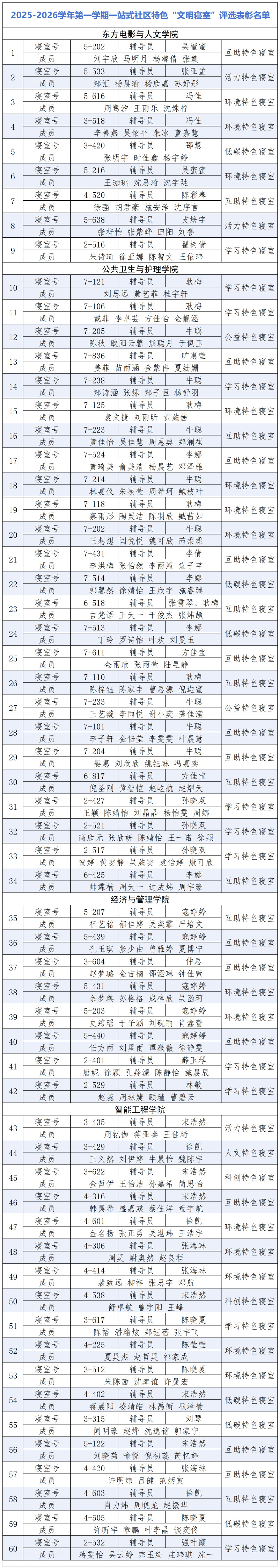 附:2025-2026學(xué)年第一學(xué)期特色“文明寢室”名單