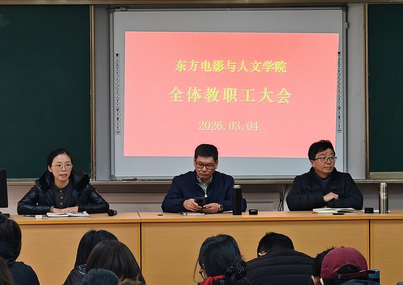 3月4日下午,東方電影與人文學(xué)院在1-209室召開(kāi)全院教職工大會(huì),圍繞學(xué)院發(fā)展、學(xué)生工作、專(zhuān)業(yè)建設(shè)、教學(xué)與招生等核心任務(wù),明確方向、細(xì)化舉措,錨定AI時(shí)代影視藝術(shù)人才培養(yǎng)與產(chǎn)教融合高質(zhì)量發(fā)展。大會(huì)由副院長(zhǎng)祝華東主持。